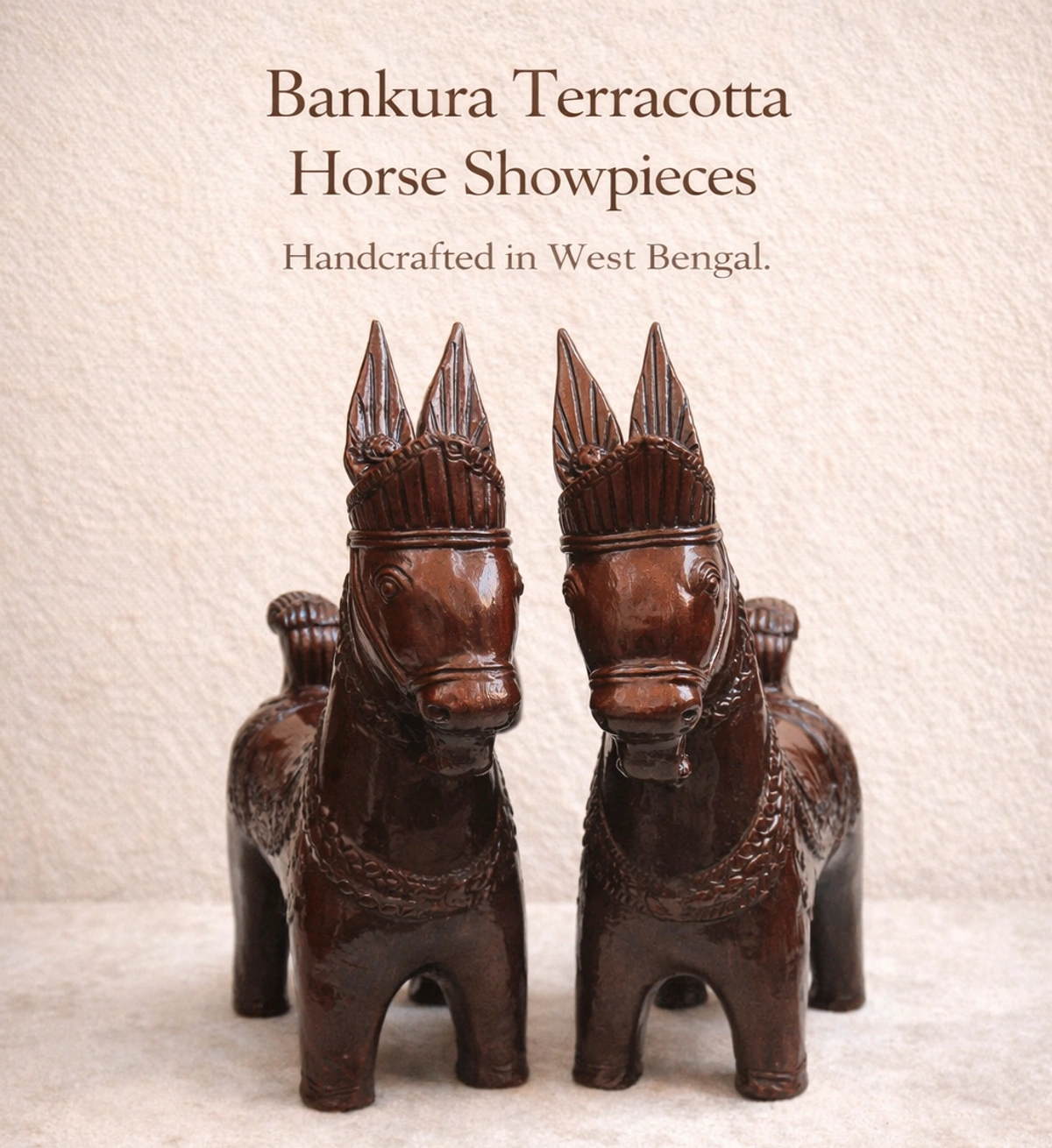 The deep earthy tone and sculpted features give them a strong yet elegant presence, making them ideal for living spaces, offices, or cultural interiors. Each piece reflects the heritage of rural Bengal and the timeless appeal of handmade Indian craft.