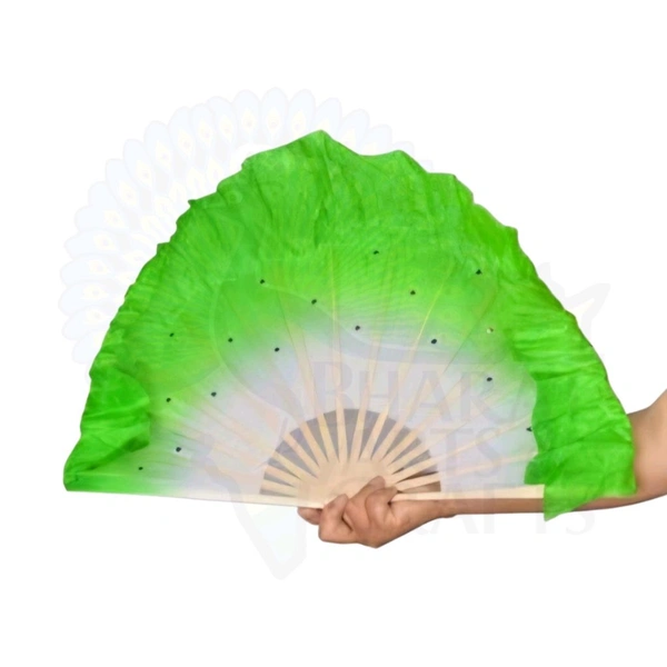 Hand Made Colorful Floral Pattern Hand Held Foldable Japanese Silk Bamboo Fan with Fabric for Dance Performance or Decoration (Green)