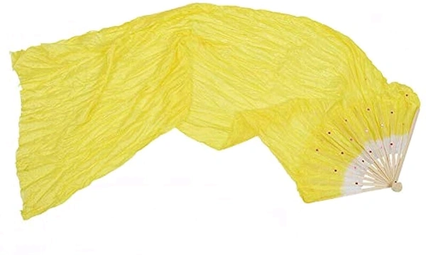 Hand Made Colorful Floral Pattern Hand Held Foldable Japanese Silk Bamboo Fan with Fabric for Dance Performance or Decoration (Yellow)