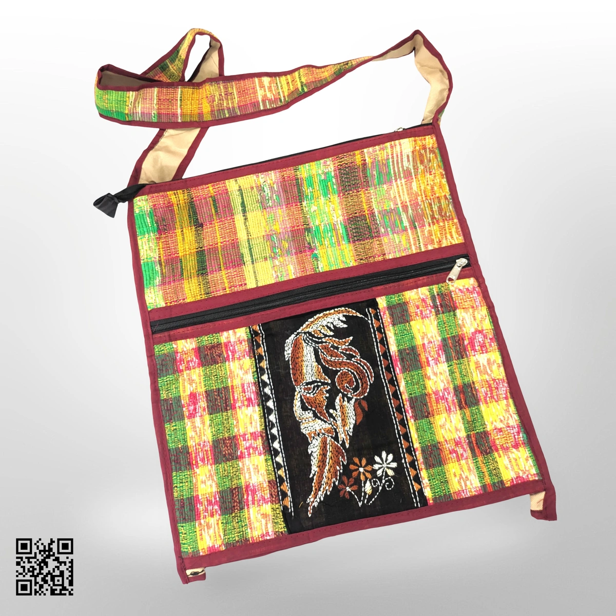 Care Instructions: Keep your Handloom Khesh Cotton Bag looking its best by spot cleaning with a damp cloth. Avoid machine washing to protect the fabric's texture and vibrancy.