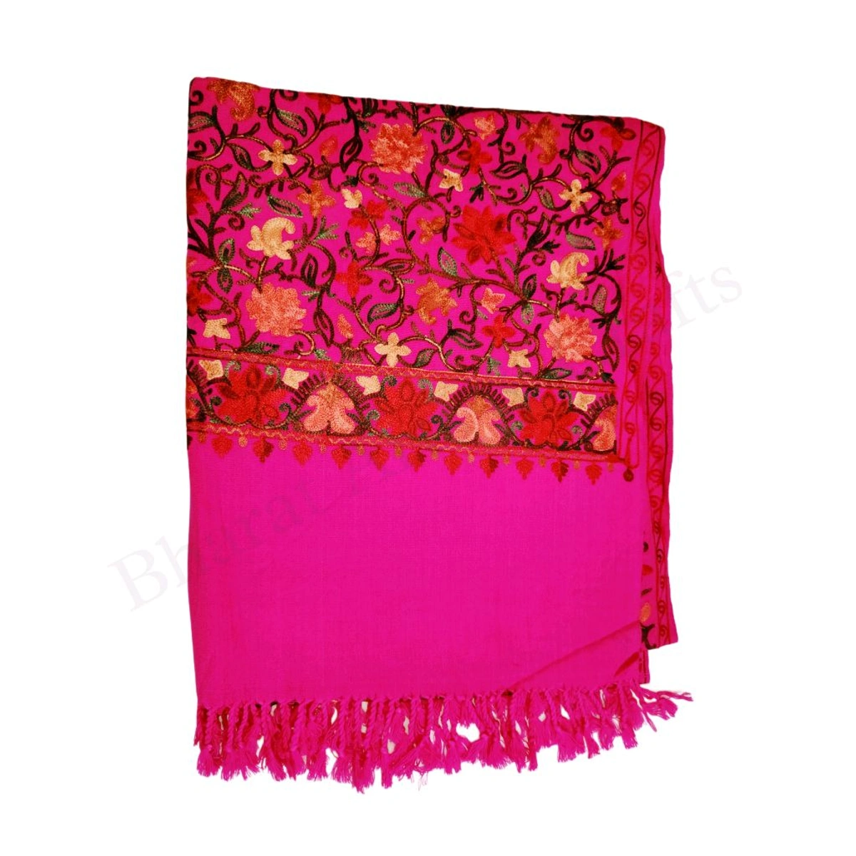 • Exquisite Kashmiri Aari Embroidery: Featuring intricate Aari embroidery, this stole showcases the rich craftsmanship of Kashmir. The fine chain stitch patterns are created by expert artisans using a special hooked needle, making each piece a unique work of art.