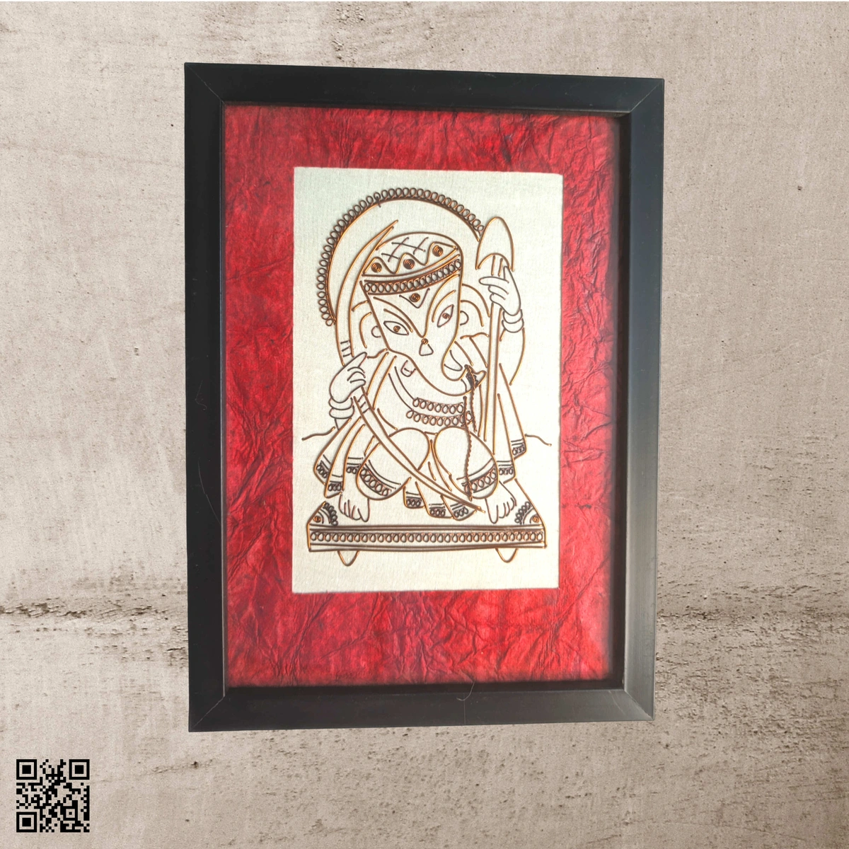 Wire sculpture is the creation of sculpture out of wire. In the 20th century, the works of modern practitioners developed the medium of wire sculpture as an art form.The wires are of a variety of decorative metals in different cross-sections. Artists use all kinds of materials to make magic. That is why this is one of the most trendy and favored of the bunch right now. Copper wire art is one of the more interesting ways to create a beautiful canvas. These arts are all handmade pieces by award winning artist and so each piece is unique.The artist did the copper sculpture of Lord Ganesha on a cotton cloth canvas. Then it is decorated with blue handmade paper on its four sides. Finally it is mounted in a glass frame. The photo frame is a wall hanging.