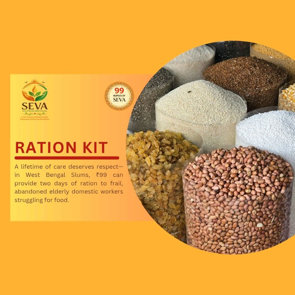 Your ₹99 is more than just a donation—it’s a bag of hope for a family in crisis.