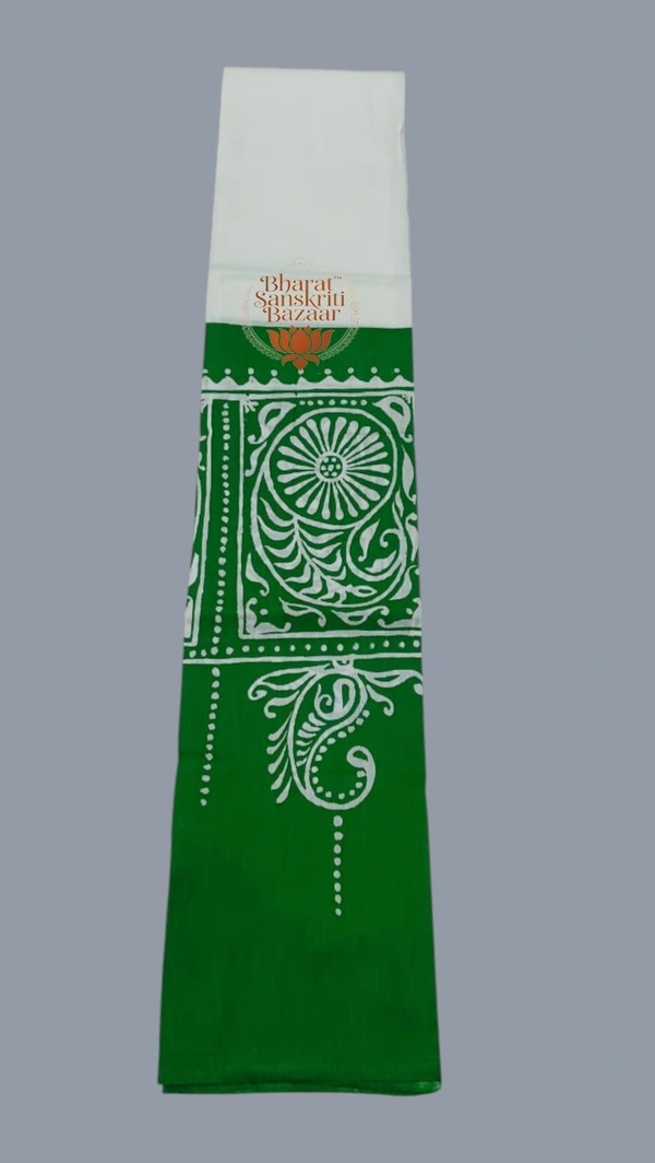 Shantiniketan Prakriti Dhara Batik Uttario (White & Green)