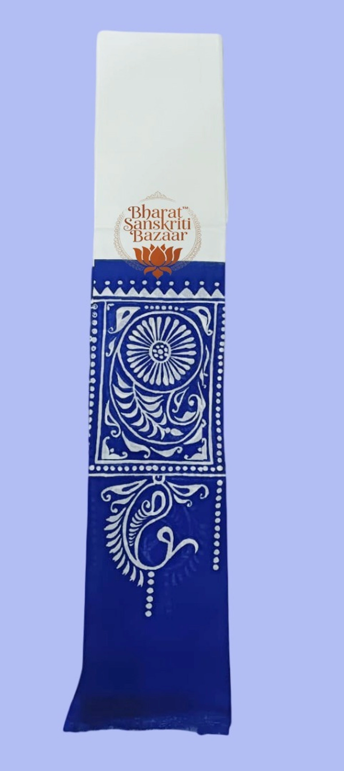 Shantiniketan Prakriti Dhara Batik Uttario (White & Blue)