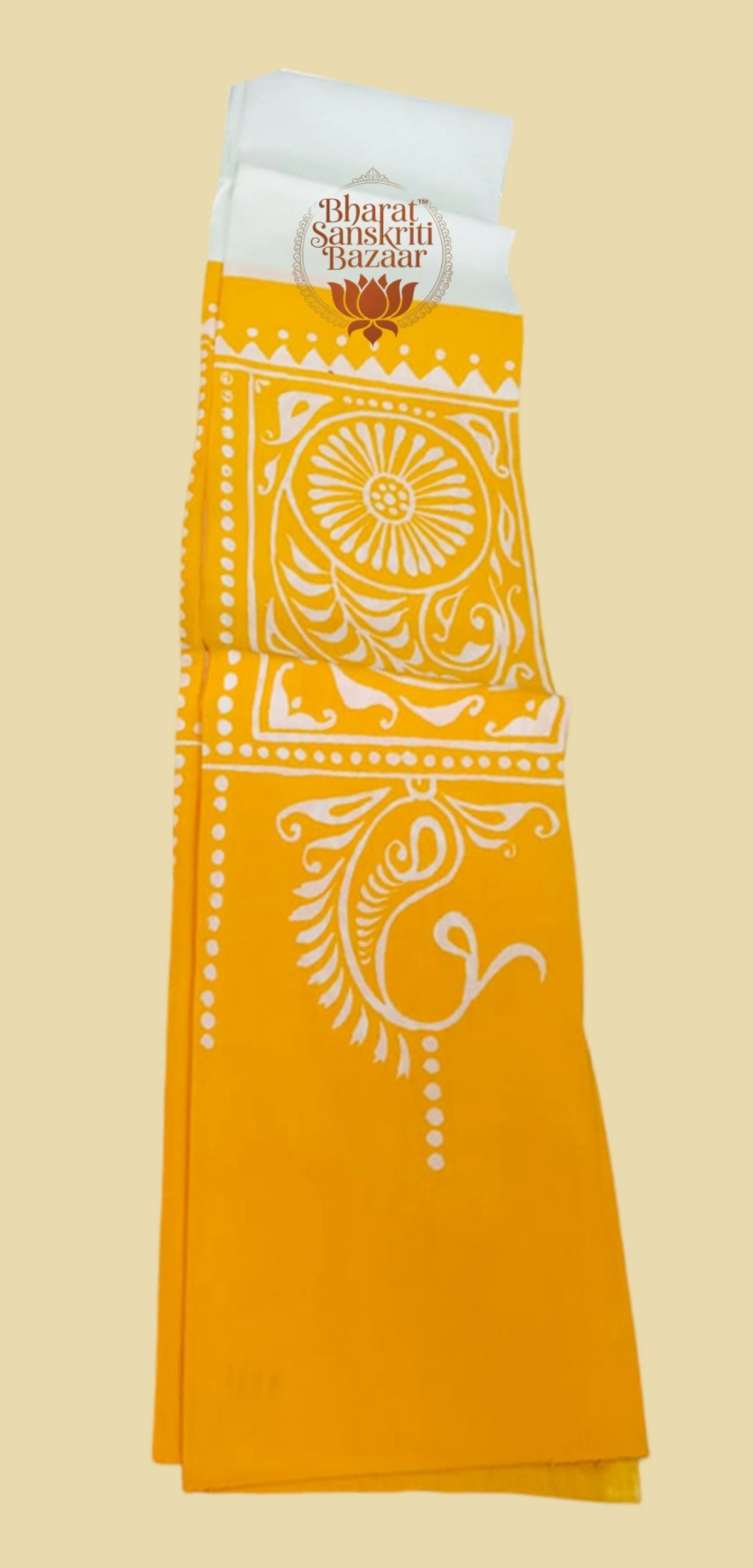 Shantiniketan Prakriti Dhara Batik Uttario (White & Yellow)