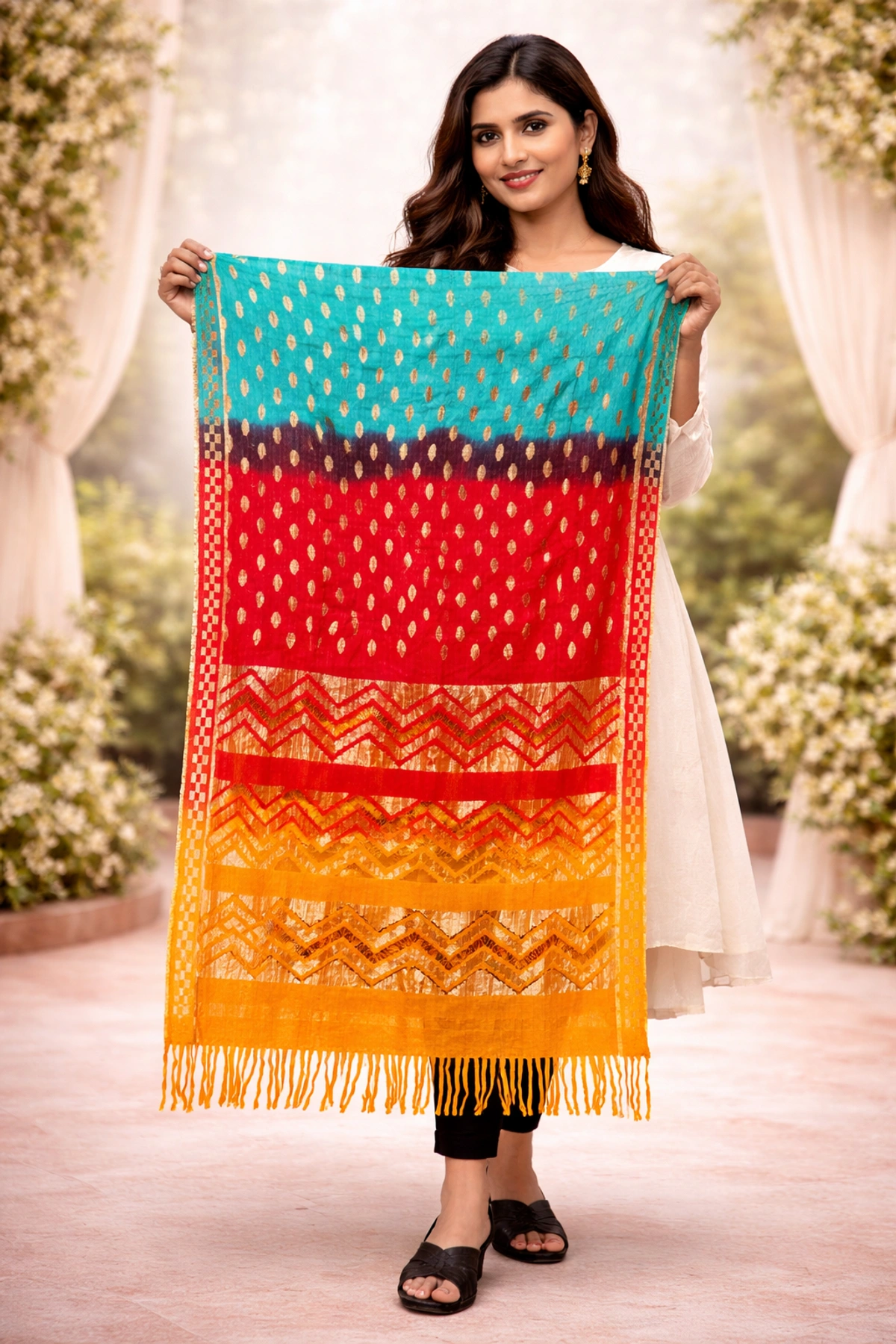 Silk Bandhani Dupatta / Uttorio (Multicolor)