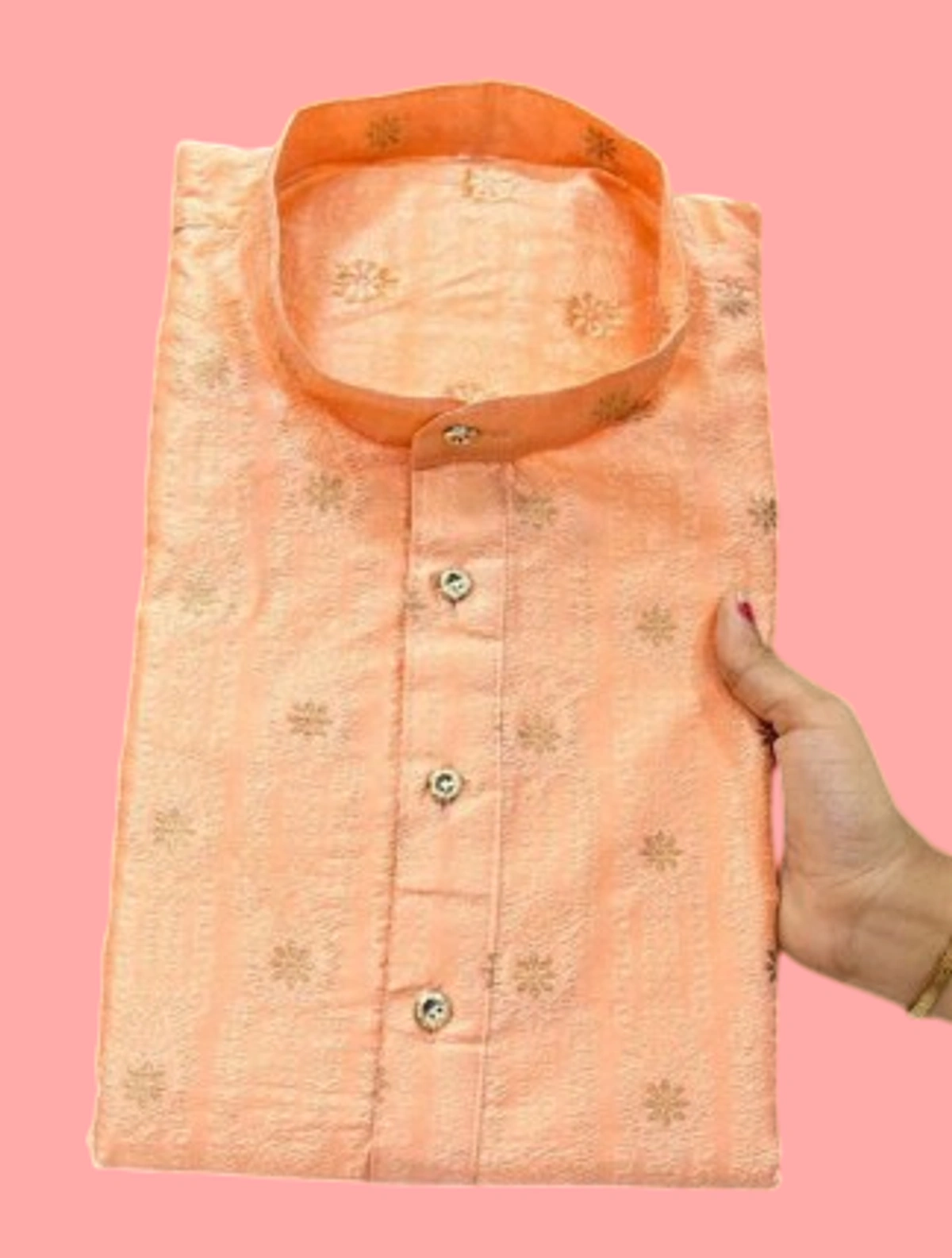 Light Peach Soft Silk Men's Kurta- Elegance Redefined